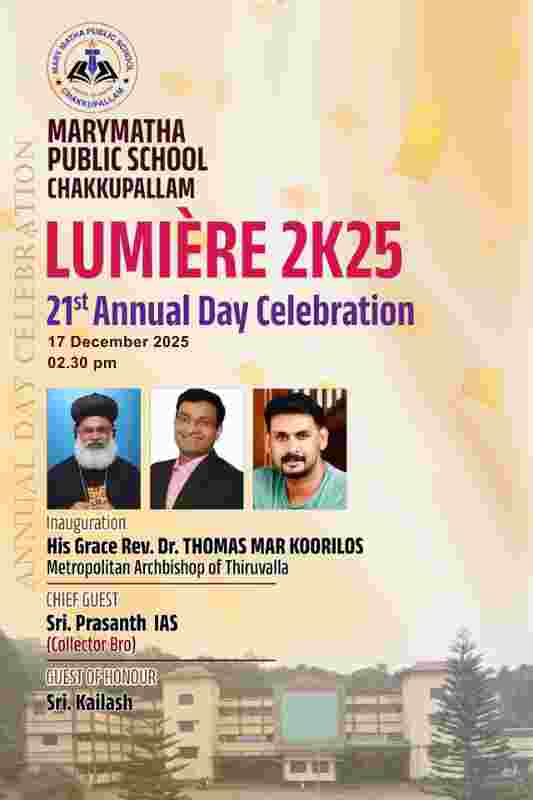 Marymatha Public School, Chakkupallam, is delighted to announce its Annual Day Celebration, “LUMIERE,” to be held on 17 December 2025.