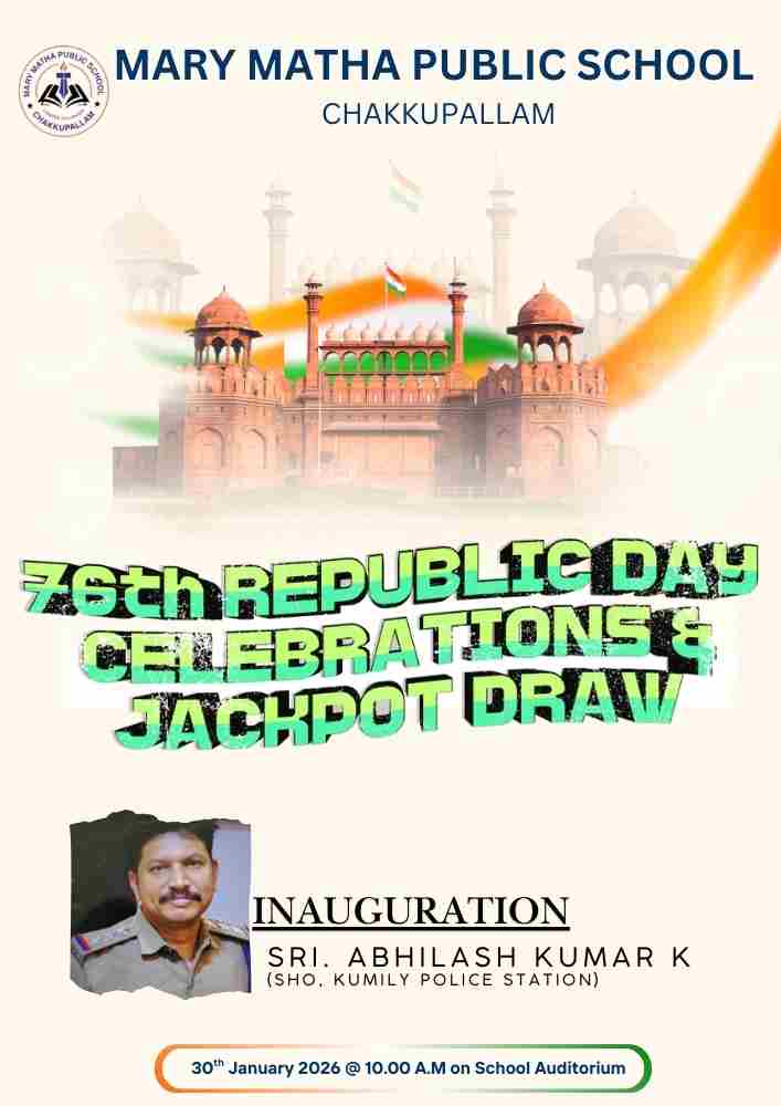 Marymatha Public School, Chakkupallam, is proud to announce the Republic Day Celebration along with a Lucky Draw, scheduled on 30 January 2026.